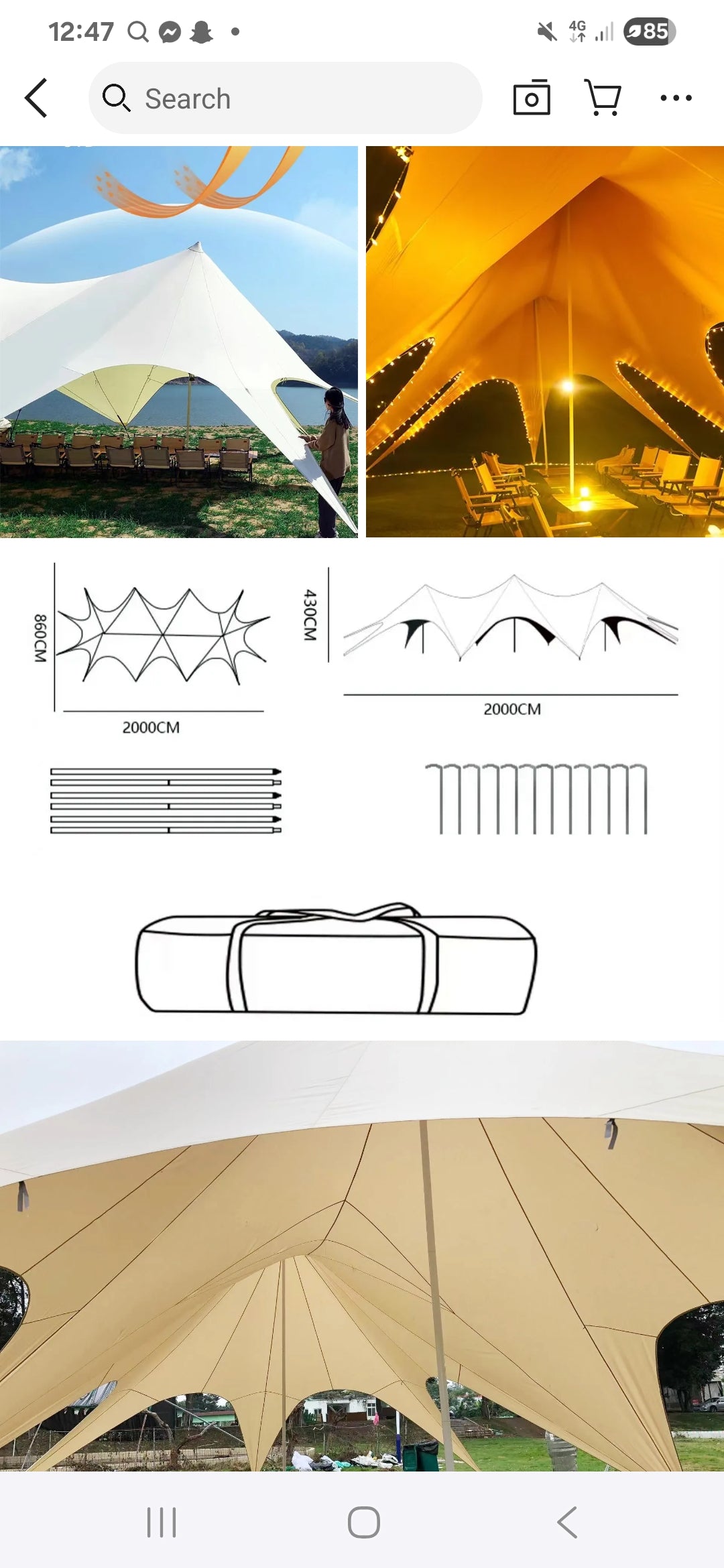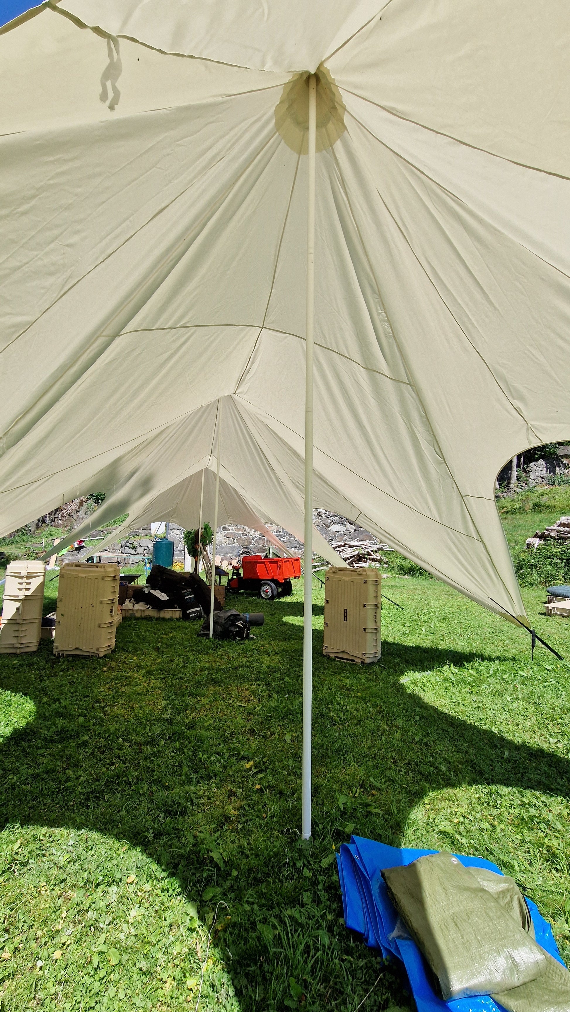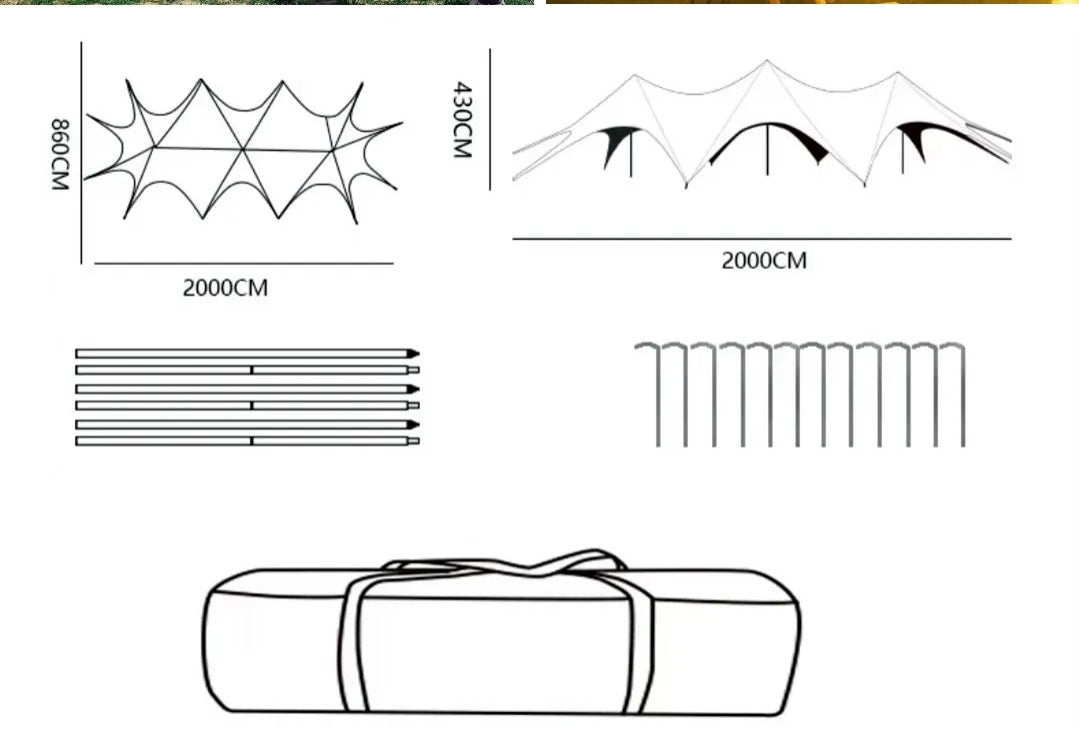 Gjør utendørsarrangementet ditt uforglemmelig med dette solide, stjerneformede partyteltet! Med en lengde på 20 meter og bredde på ca. 8 meter, er dette teltet skapt for å imponere – og rommer opptil 40 personer komfortabelt i både sol og regn.