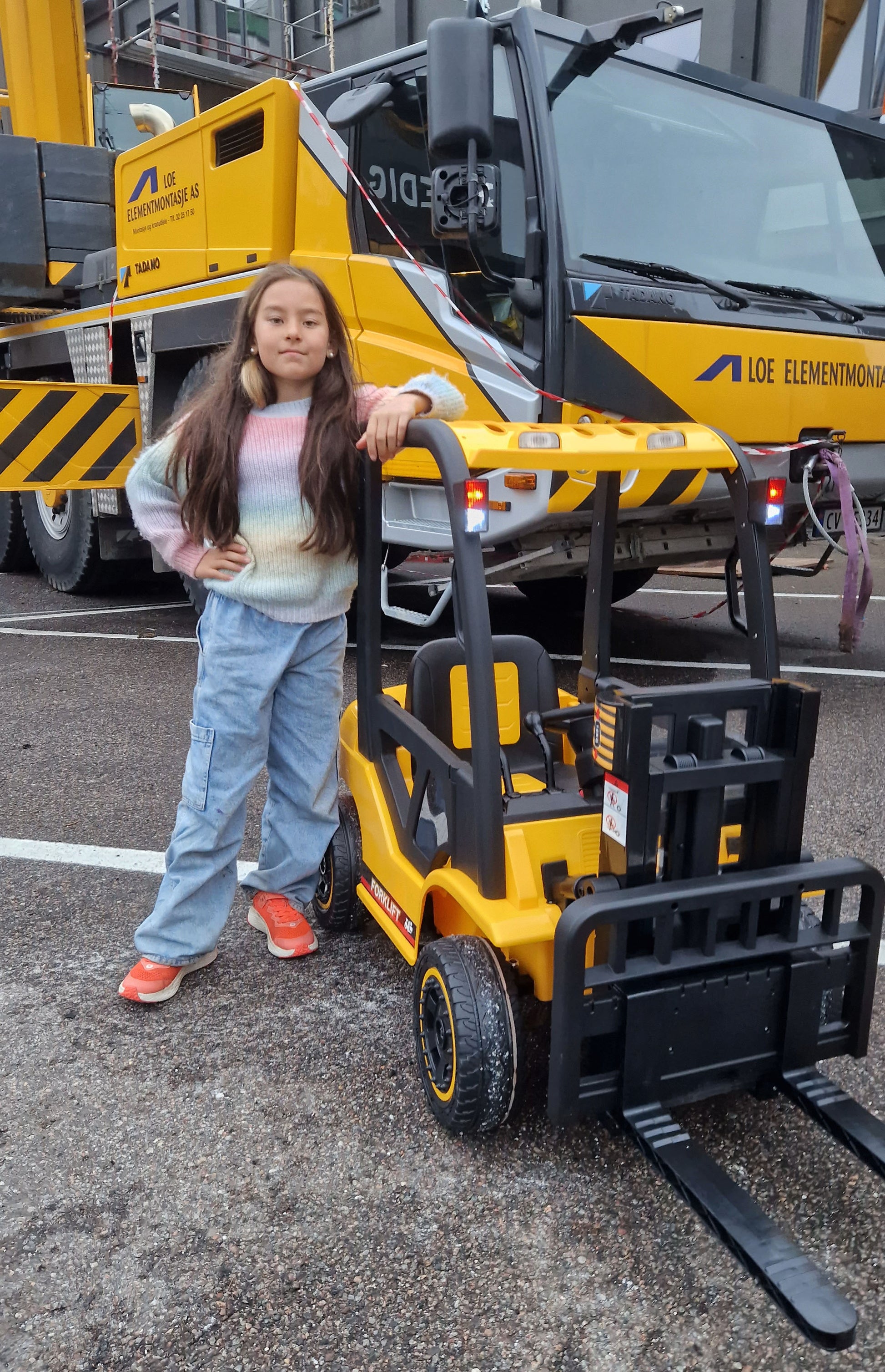 Fullt fungerende truck for barn fra 3 til 8 år. Trucken kan løfte og frakte paller med vekt opp til 10 kg.
