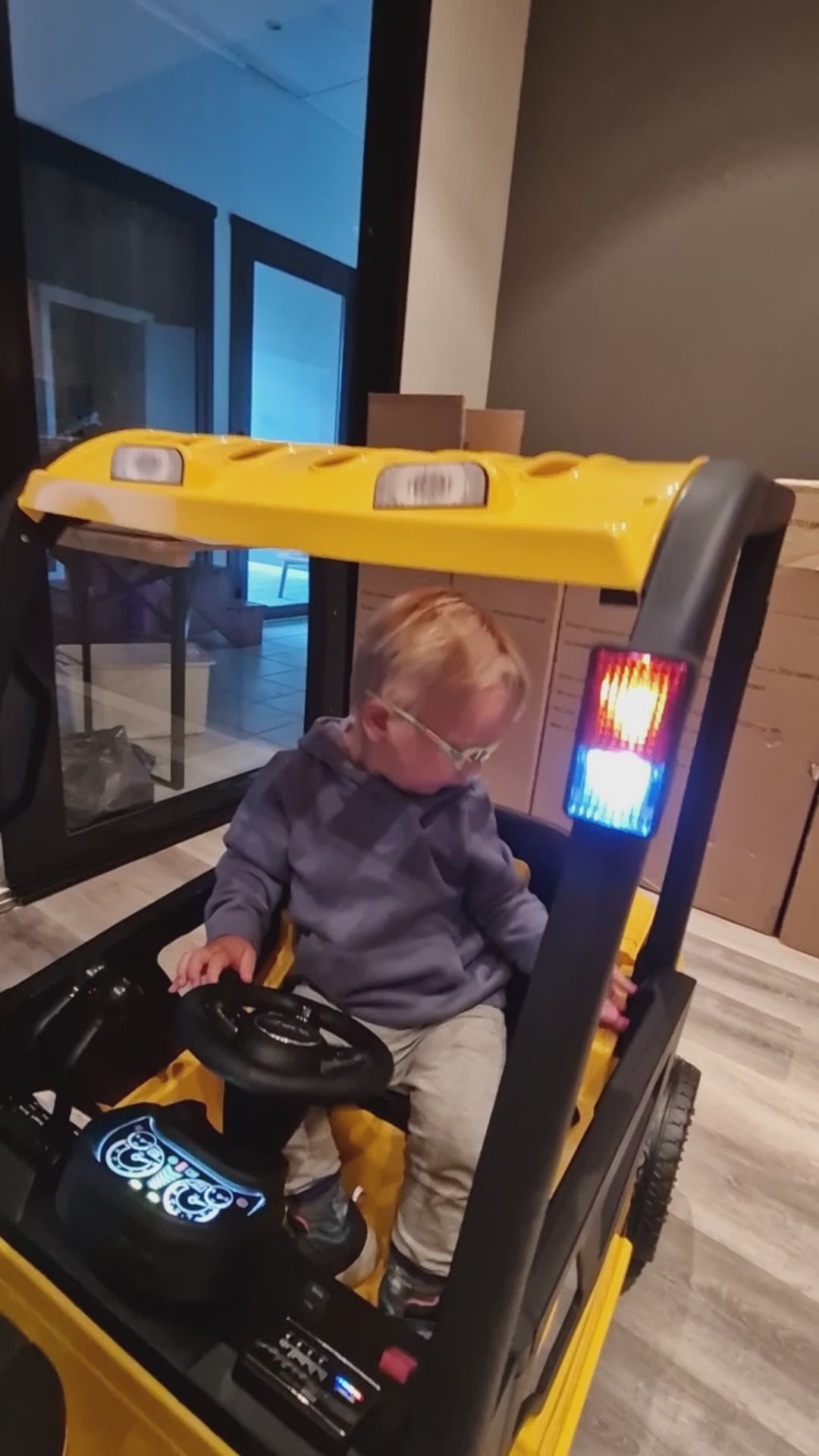 Den medfølgende fjernkontrollen kan brukes til å stoppe dersom barnet enda ikke har helt kontroll, samt og sette fartsnivået, eller fjernstyre trucken (svinge, frem-tilbake og løfte opp/ned)